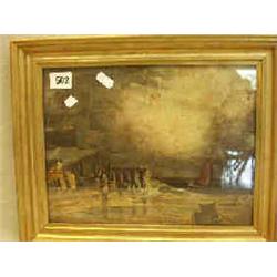 Framed oil of foreshore scene, unsigned on oak panel, 10x12" £80 - 120...