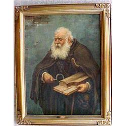 Framed oil on canvas "The Old Beggar", signed V. Libert (L.L.), also plaque on front of frame, measures 37" x 28"