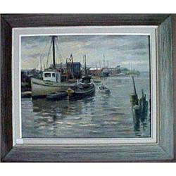 Framed oil on canvas, boats at dock, signed F. C. Herbst (L.R.), well listed 20th C. artist, measures approx. 16" x 20"