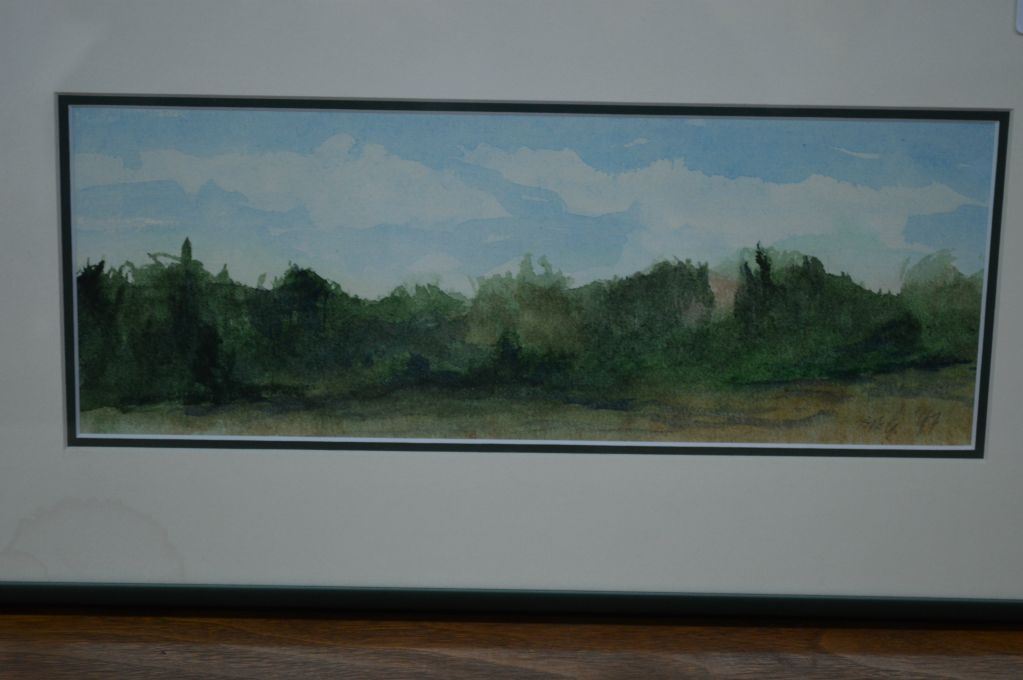 Framed original watercolour painting "The Grove" signed by artist Bruce Grams 4 /12" X 10 1/2"