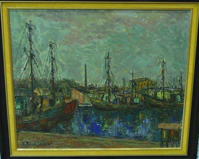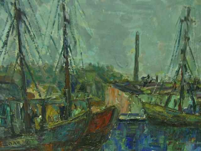 "Ships in Port" on artist board. Signed lower left. Approx. 19" x 22.5"