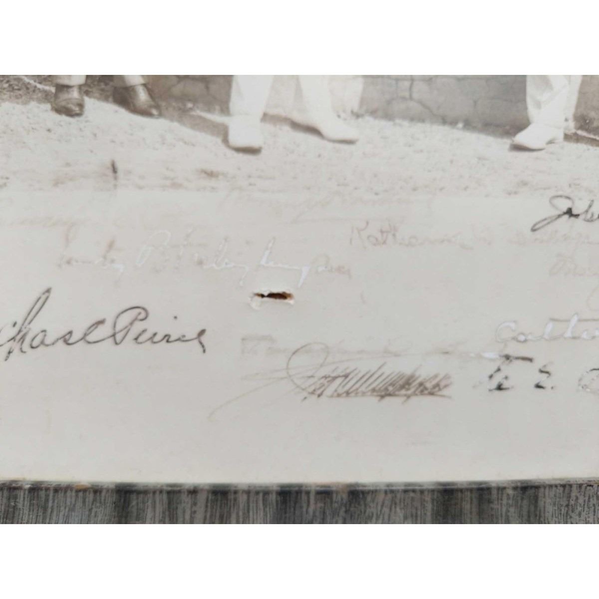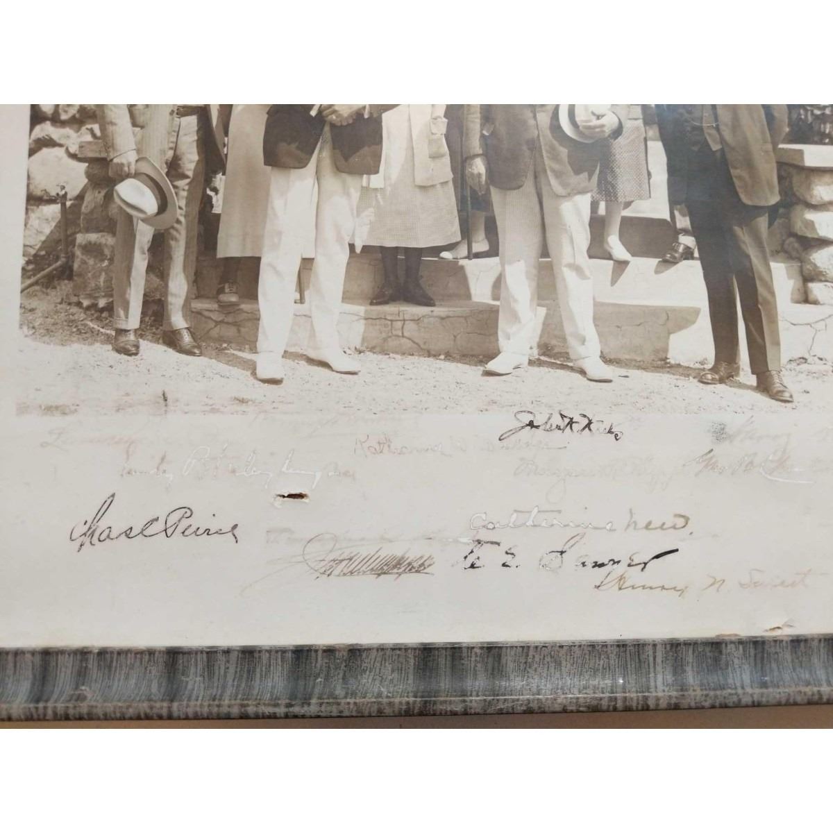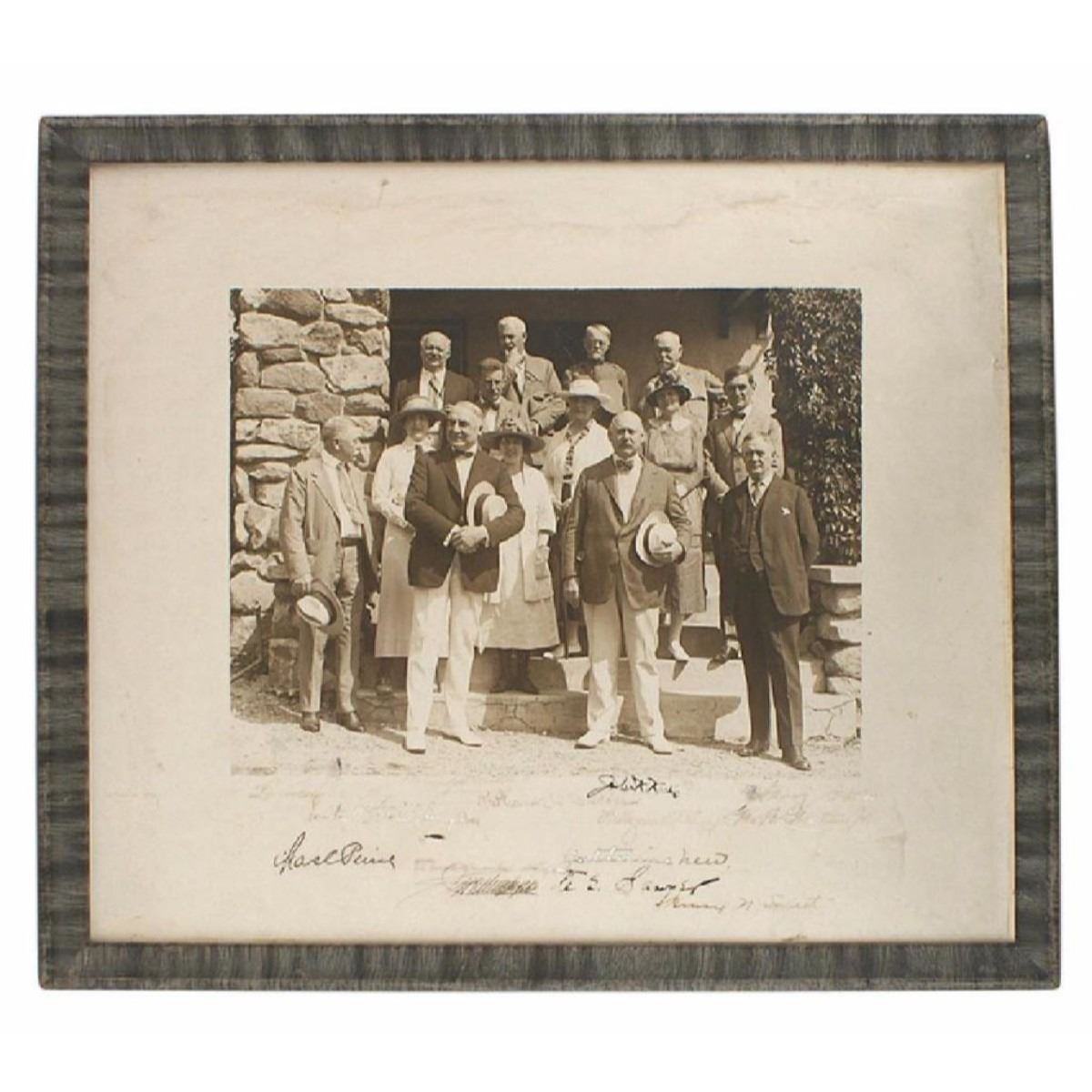 S-018 Framed photo of President Warren G. Harding, his wife, 4 Senators and other dignitaries-with signatures on the wide border. Reverse has a printed list of the guests of John Wingate Weeks at MOUNT PROSPECT, LANCASTER, NEW HAMPSHIRE - AUGUST 2-6 1921". Obverse shows age and some signatures are faded. 14" x 16".