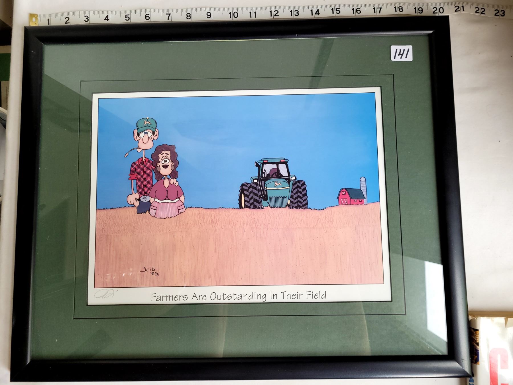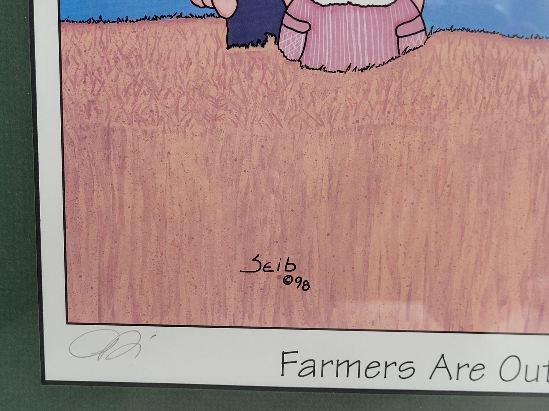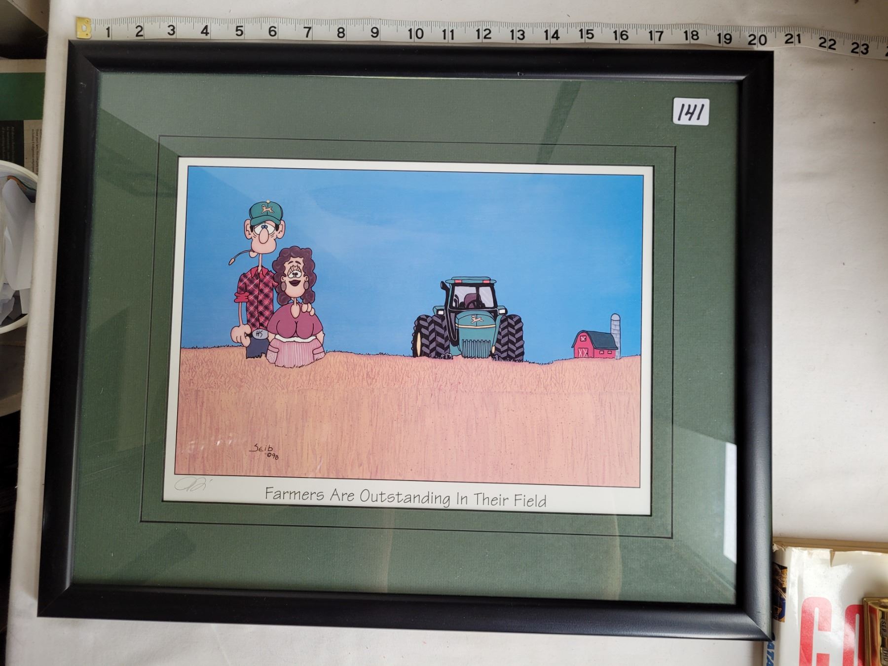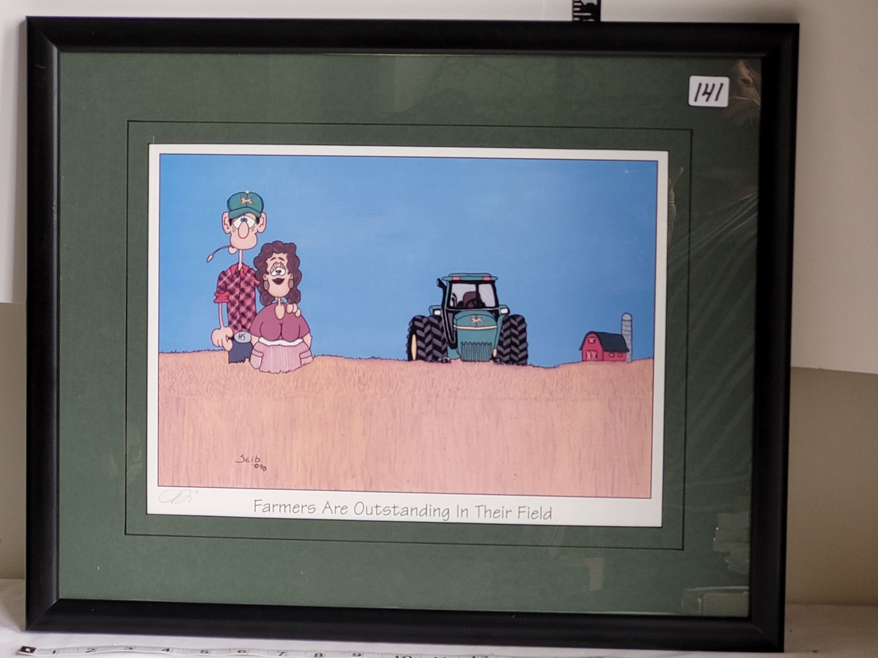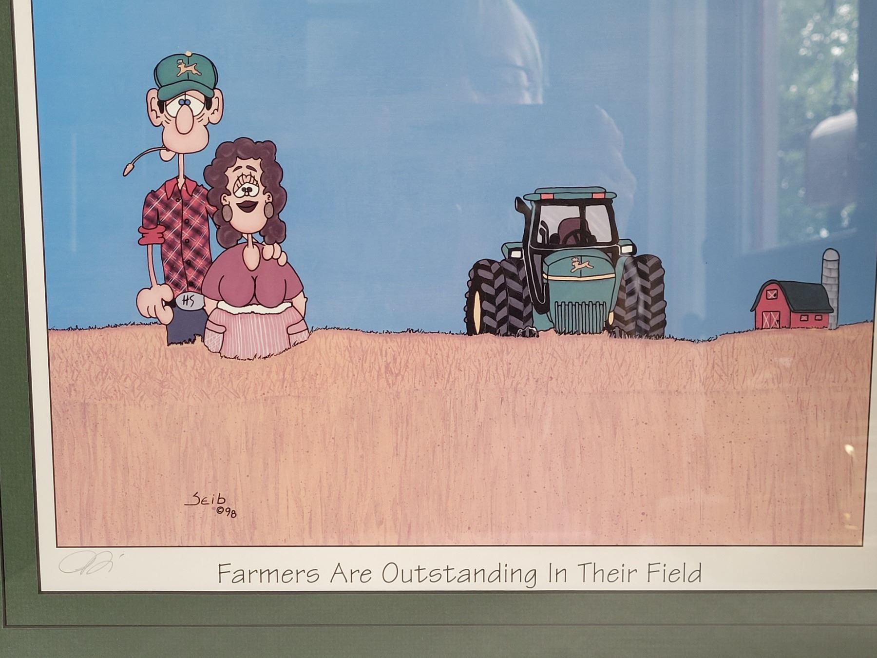 Framed print by Seib.”Farmers are outstanding in their field” John Deere in background.