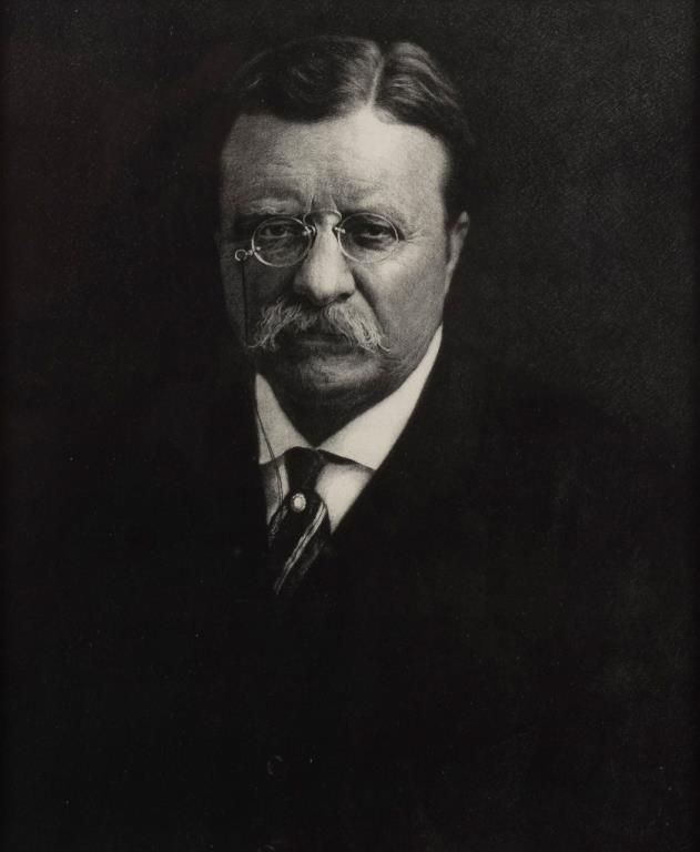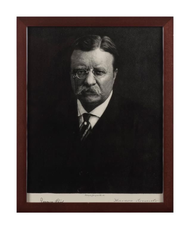 Framed print of President Teddy Roosevelt by Jacques Reich, approx. 15” x 12”. Est.: $50-$75.