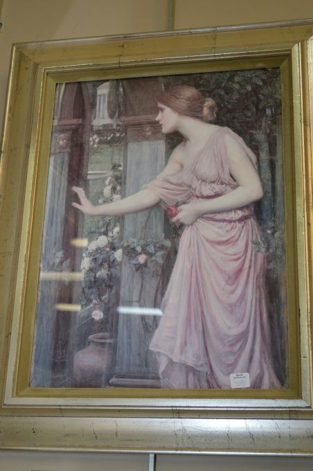 Framed print of a French maiden in a courtyard