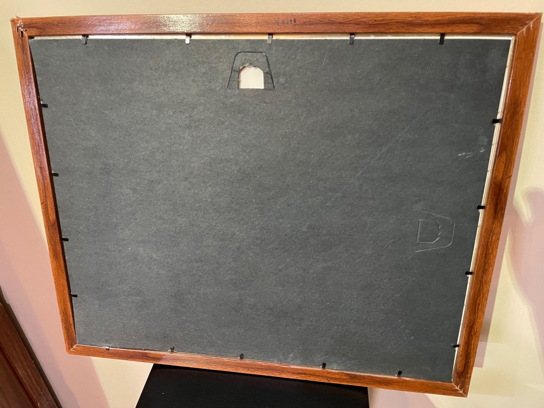 Framed print "Katies garden" with a wood frame. Measures: 22 inches long x 17 - 1/2 inches tall.
