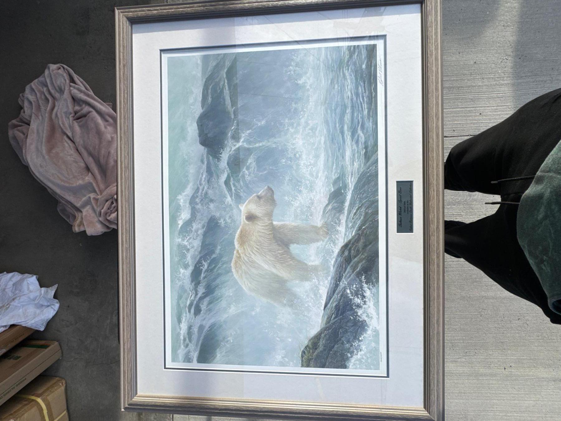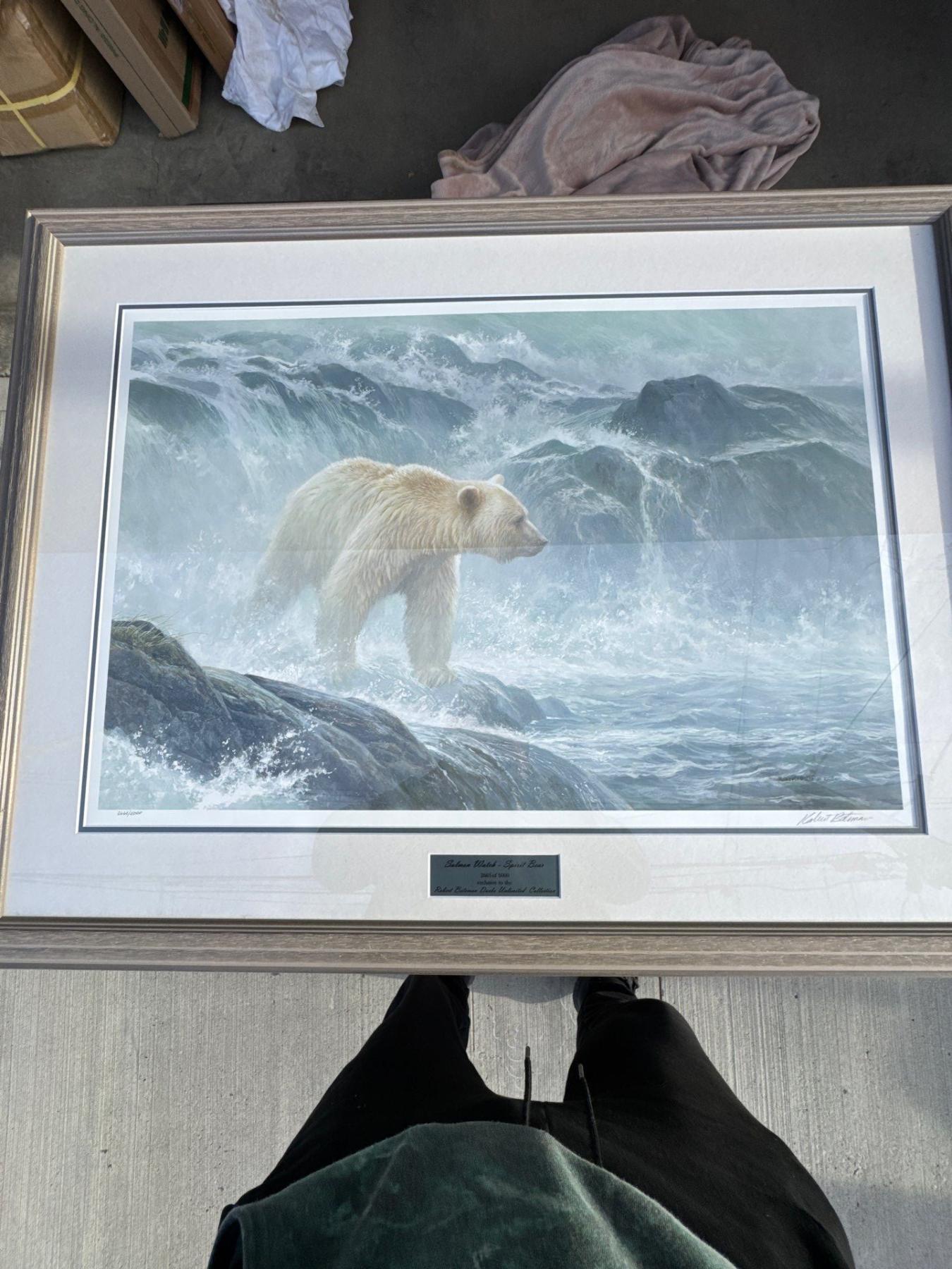 Framed salmon spirit bear salmon watch number two six six five of 5,000 exclusive to the Robert Bate