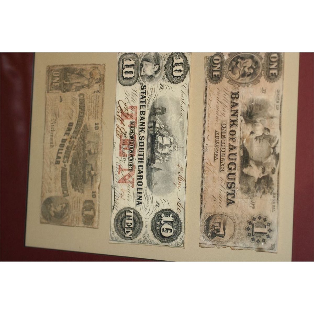 Framed set of Confederate Dollars from Augusta ($1), South Carolina ($10), & Virginia ($1)