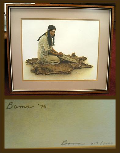 Framed signed Ltd. Ed print by well known artist James Bama entitled "Sage Grinder" ed. 617/1000. Framed size 23" x 27" under non-glare glass
