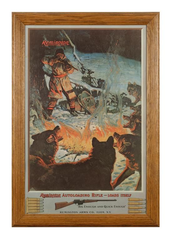 Framed two-sided color advertiser, some damage to edges, older reproduction; approx. 32” x 22” overall. Est.: $100-$300.