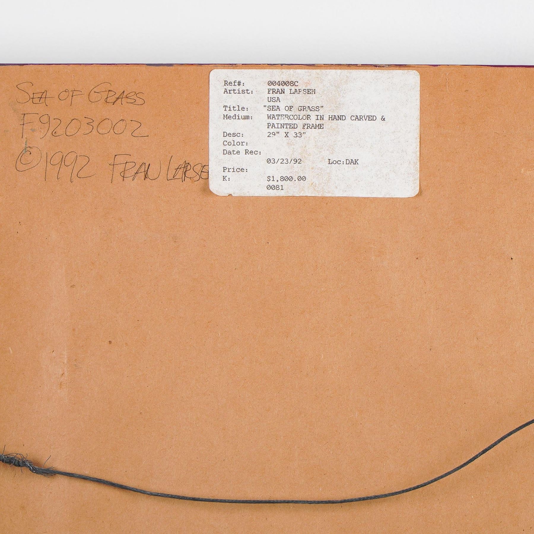 Fran Larsen, Watercolor on Hand-Painted Frame, Sea of Grass, Signed