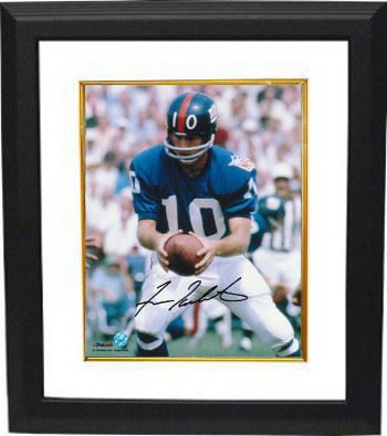 The Minnesota Vikings drafted Fran Tarkenton in the third round of the 1961 NFL Draft. He led the Vikings to three Super Bowls in the 1970s, but lost all of them. Tarkenton won the NFL's MVP award after the 1975 season, capturing All-Pro honors in the process. Tarkenton was also second Team All-Pro in 1973 and earned All-NFC selection in 1972 and 1976. He was named second Team All-NFC in 1970 and 1974. Tarkenton was selected to play in nine Pro Bowls. In his 18 NFL seasons, Tarkenton completed 3,686 of 6,467 passes for 47,003 yards and 342 touchdowns, with 266 interceptions. Fran Tarkenton has hand autographed this New York Giants 8X10 Photo. Certificate of Authenticity from Athlon Sports Collectibles. Custom White Mat and Premium Black Color Framed as shown.