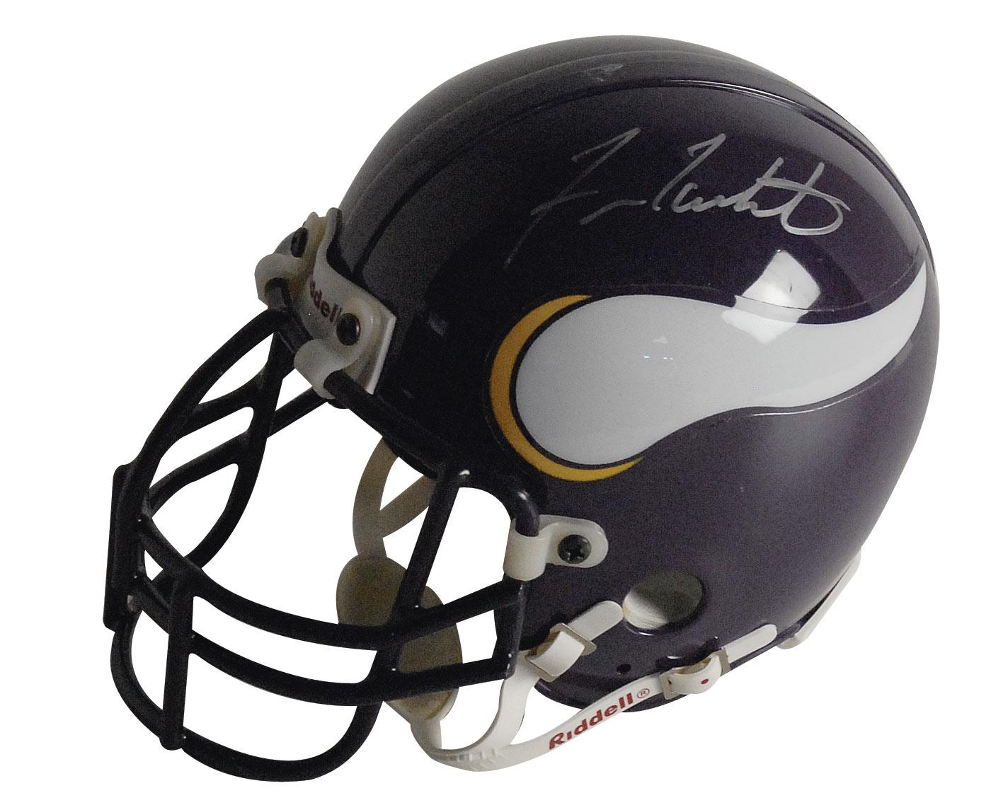 Official Riddell/Sharco Minnesota Vikings football mini helmet, with metal face mask, signed in silver ink on the side. In very fine condition.