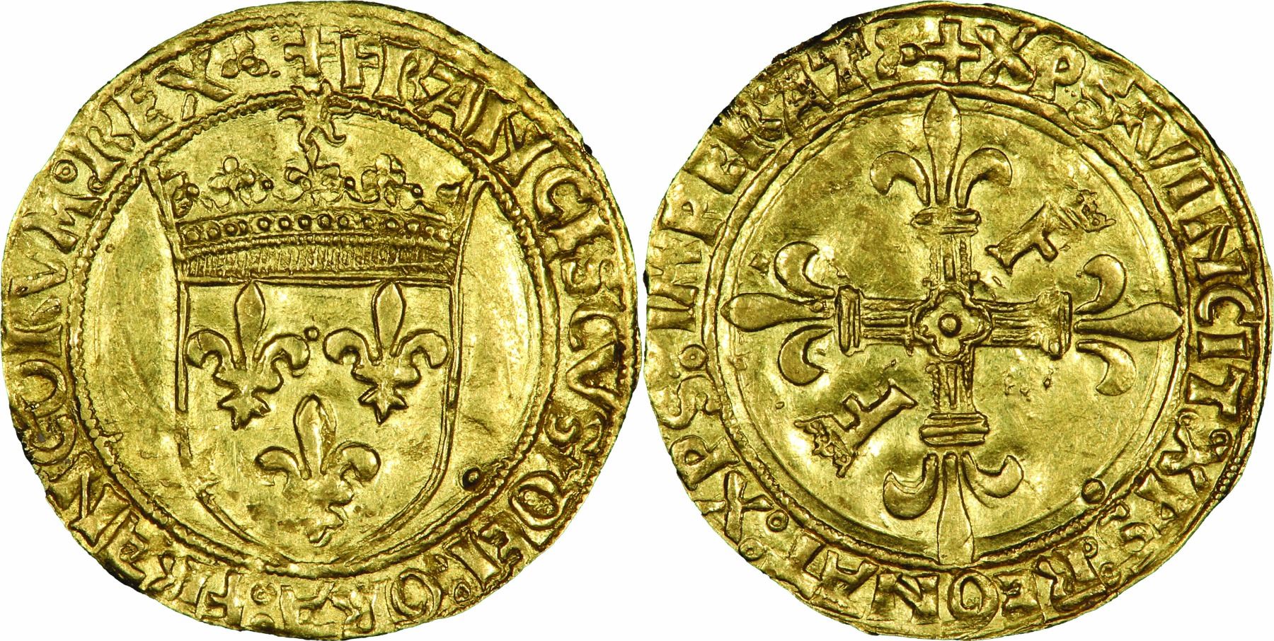 François Ier 1515-1547 Écu d'or au soleil 2e type, Lyon, 3e émission ND (après 1519), AU 3.41 g. Ref : G. 312, Dup. 771a, Fr. 342
