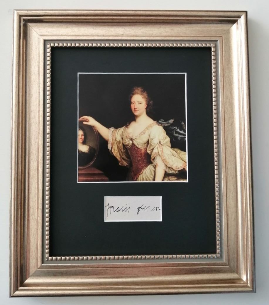 Françoise d'Aubigné signature. Mounted and framed. Supplied with coa.