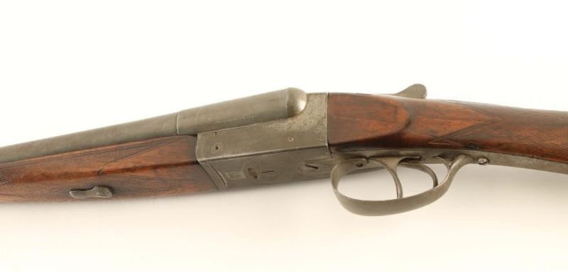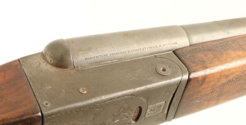 SN: 64991 'Manufrance' French side-by-side boxlock shotgun. 27 1/2" bbls, extractor, concave rib, bead front sight, light coverage scroll engraving, double triggers, tang safety and checkered wood stocks with 13 3/4" LOP. Appears to have had sling swivels at one time but no longer does. Has been cleaned, shows no remaining finish. Scattered oxidation & pin prick pitting on the barrels. Good action, fair bores and fair refinished stocks. Condition is fair. ***C&R Firearm***