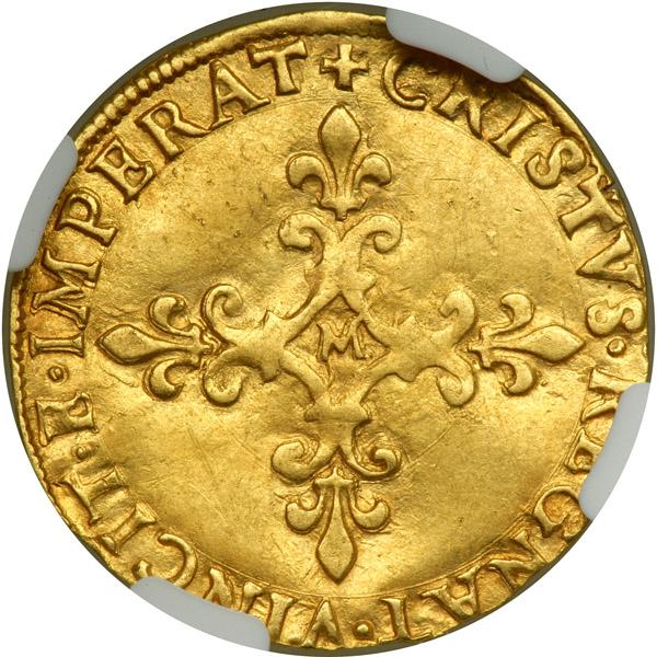 France. 1 Ecu d'or, 1567-M (Toulouse). Fr-378. Charles IX, 1560-1574. Crowned arms. Reverse: Floriated cross. NGC graded EF-45.