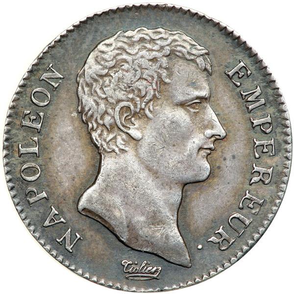 France. 1 Franc, AN-13-A (Paris). KM-656.1; Gad-443. Napoleon I. Empereur. Bare head right. Reverse: Value within wreath. Toned. NGC graded AU-53.