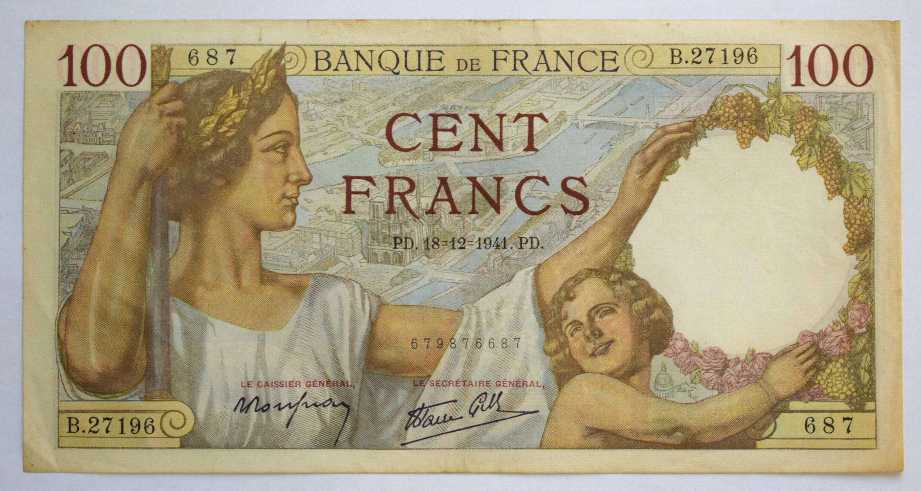 France, 100 Francs 1941 Issued Note Pick #94 XF