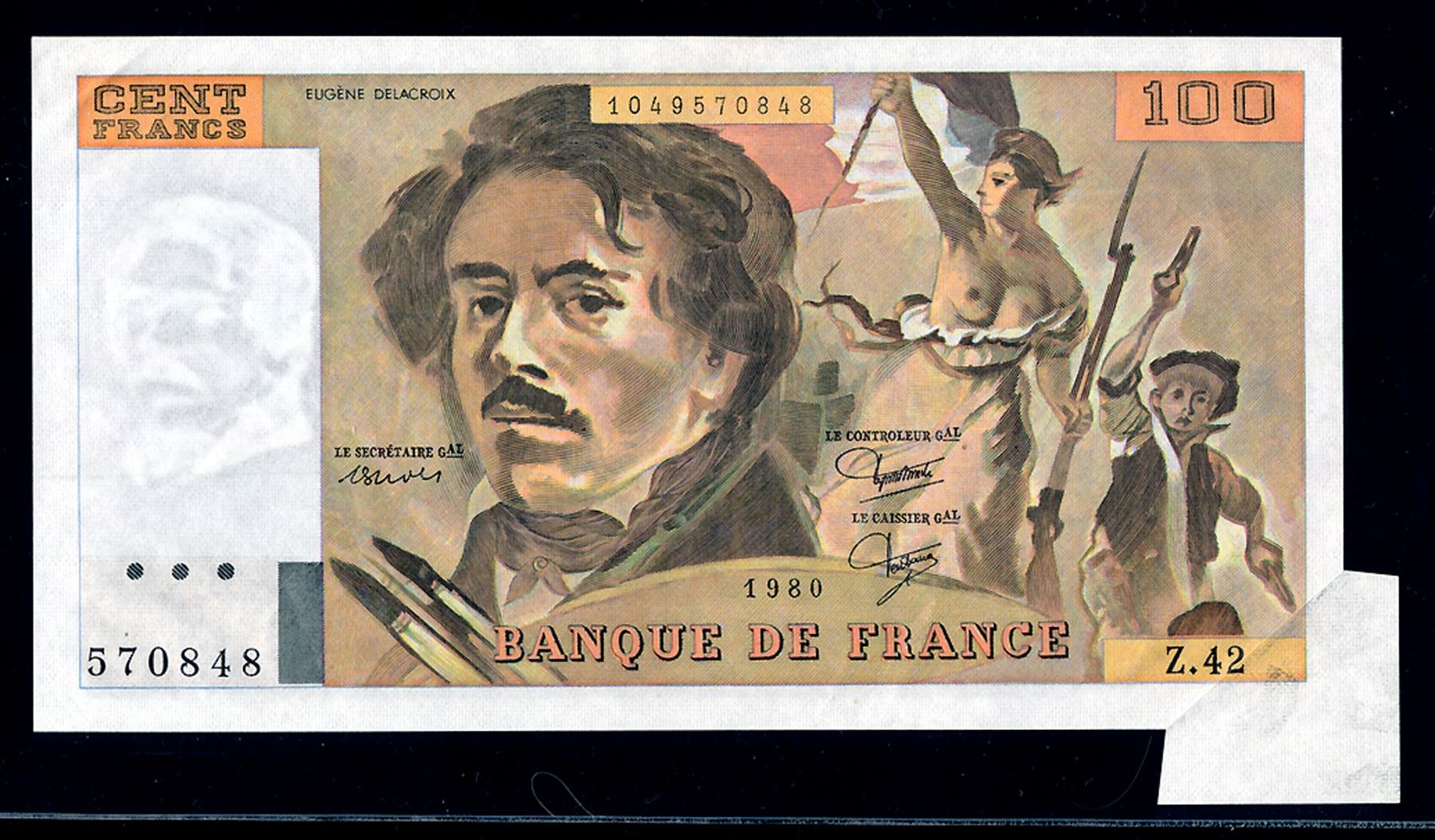 Bank of France, One Hundred Francs, 1980 "Cutting Error", SCWPM# 154b, Serial # Z.42.570848. Graded PCGS Choice About New 55 PPQ