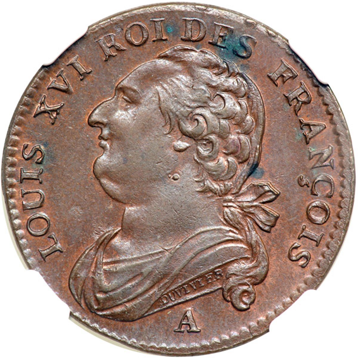 France. 12 Deniers, 1792-A. KM-600.1; Gad-15. Louis XVI. Bust right. Reverse: Column with liberty cap above, value and date below. Nice original luster. NGC graded MS-62 Brown.