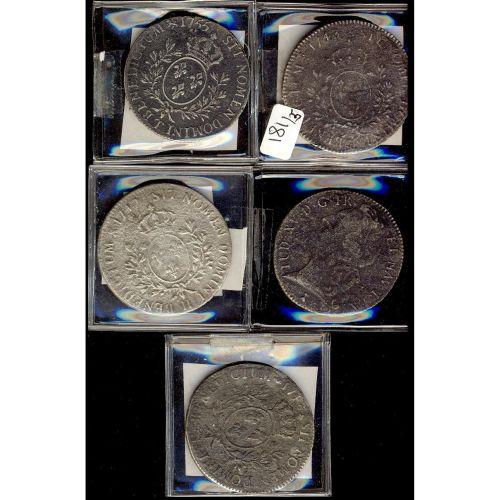 France 1742-1755 KM#512, Lot of 5 pcs includ