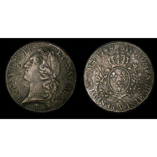 France 1749V KM#512,21. Another unlisted date in Krause. Krause shows the Troyes mint striking 13 dates between 1742-1767 and none between 1748-1753. Mintmark very obvious. Should bring in premum bid. Coin does show sea corrosion. VF<BR><BR>Each individual coin and/or lot will show the gradefollowed by a letter ranking (a), (b) and (c). The letter (a) will indicate that the salt water has had some minor affect on the coins and its patina is not unattractive. The letter (b) will indicate that the coinsshow some form of sea immersion affects in that the patina may show slightly more corrosion, however the coin remains aesthetically pleasing. The letter (c) will indicate sea immersion affects more severe than the (b) type described above, but all the dates and details will be there and visible. Extensively damaged or worn coins will be described and priced as such.<BR><BR>Notice. For all winners of lots pertaining to the Auguste Shipwreck, please be advised that due to Canadian Laws in reference to the Exportation of Archeological and Shipwreck finds, a request for permission to export these items must to be filled and sent into Canadian Customs for approval for every lot won and shipped outside Canada. In most cases this will cause a delay of 10 to 20 business days for all shipment of lots once payment received. We have been in discussion with Canada Customs and anticipate no problems. We ask for your patience and will do our best to keep each buyer updated on their lots. Please contact us for further information if necessary.