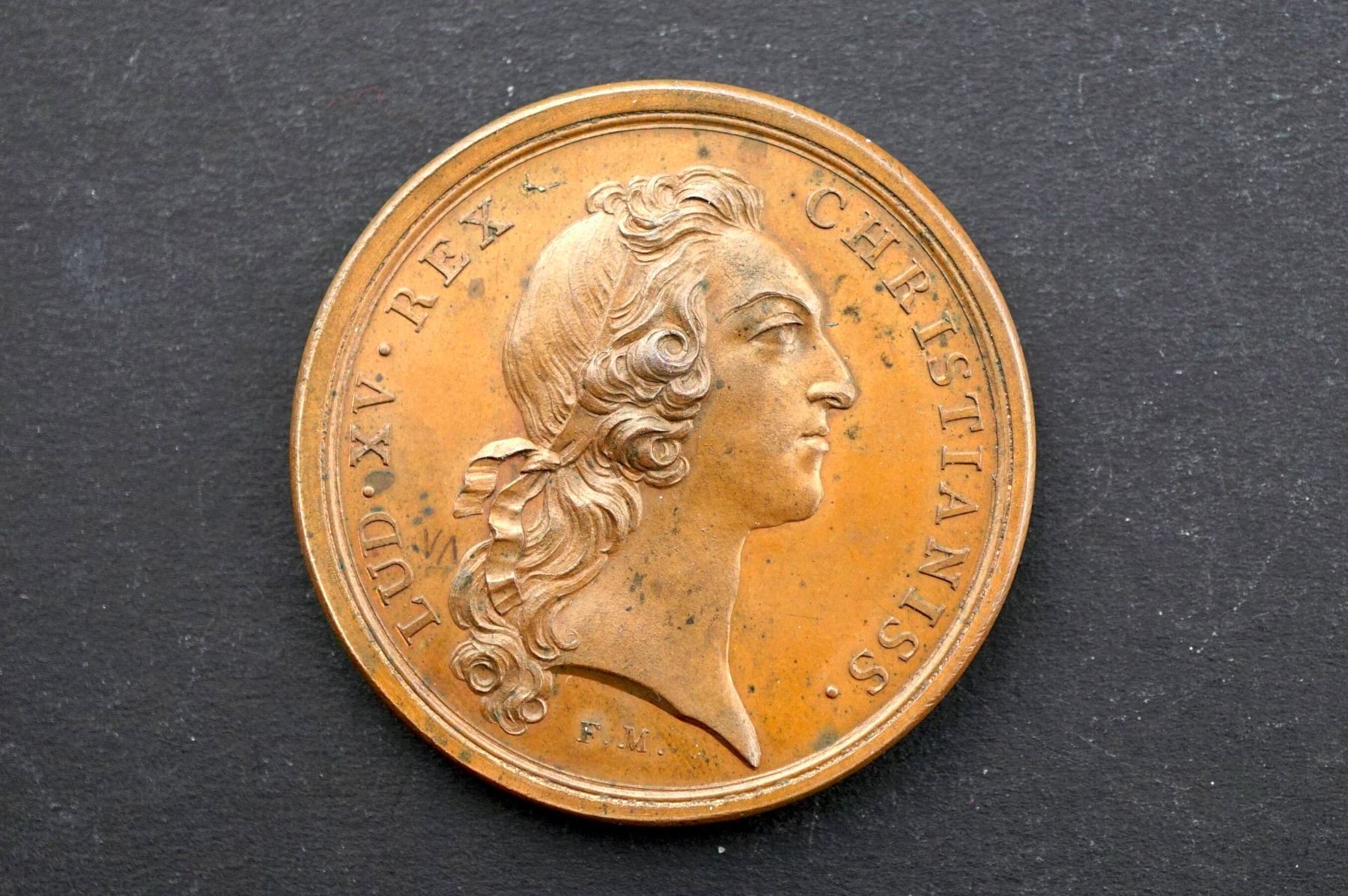 Louis XV facing right w/titles Rev: Moneta with scales and coin press FDC AE-42, 34.0 grams edge: Plain cabinet wear
