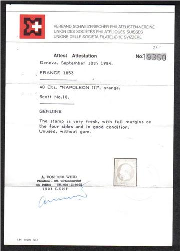 France #18 MINT XF GEM PART OG WITH CERTIFICATION