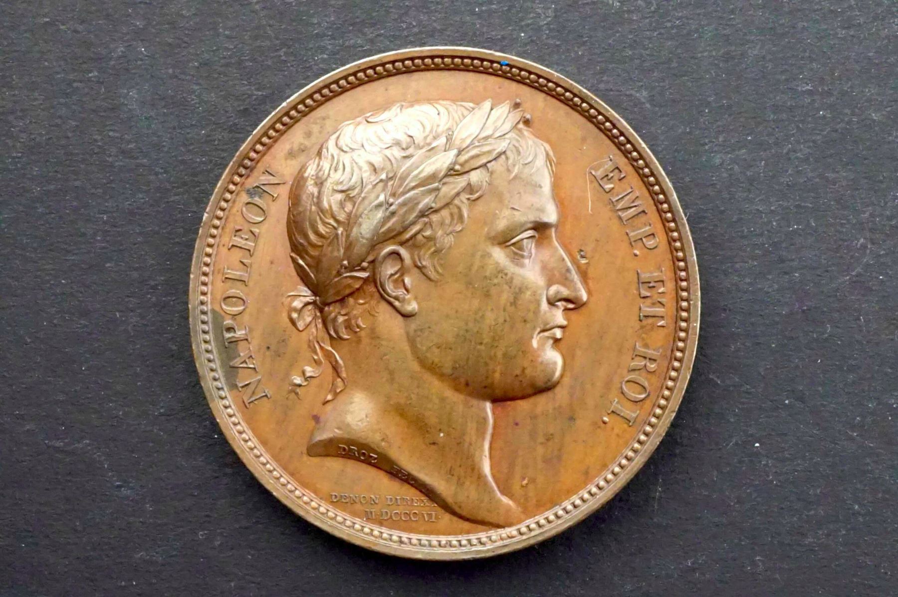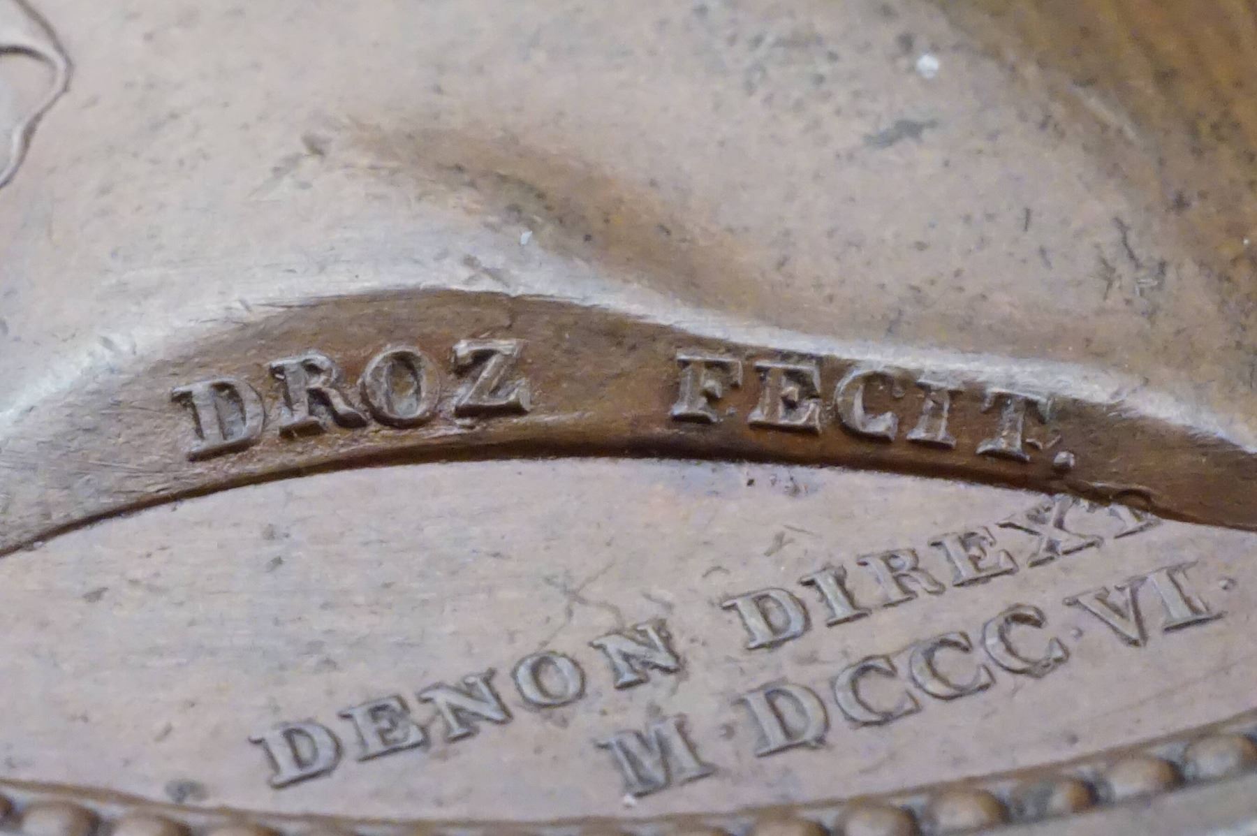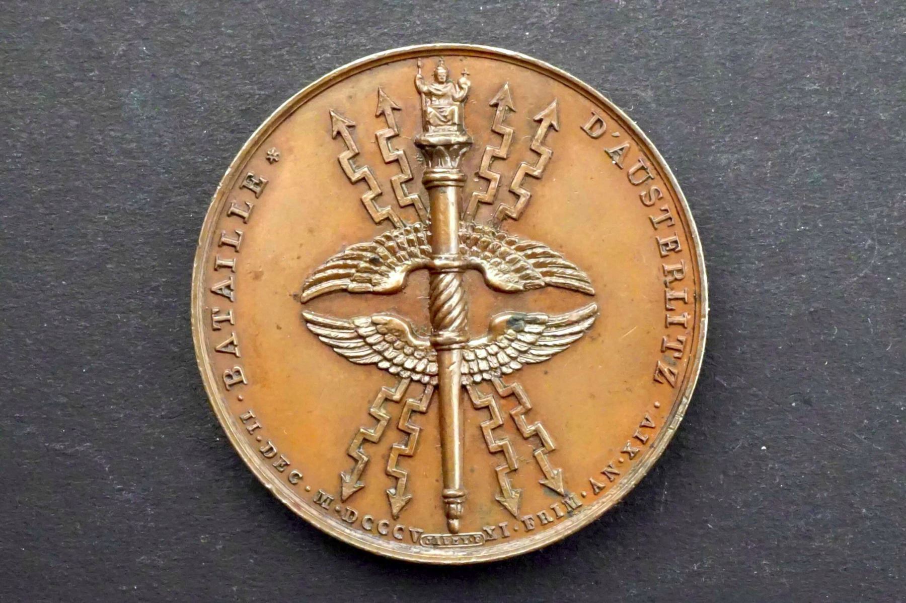 Napoleon facing right w/titles by P.Droz Rev: Battle of Austerlitz Marshall's Baton w/wings and thunderbolts by Jaley, Extra Fine, G-37, AE-41, 36.7 grams. edge: Plain