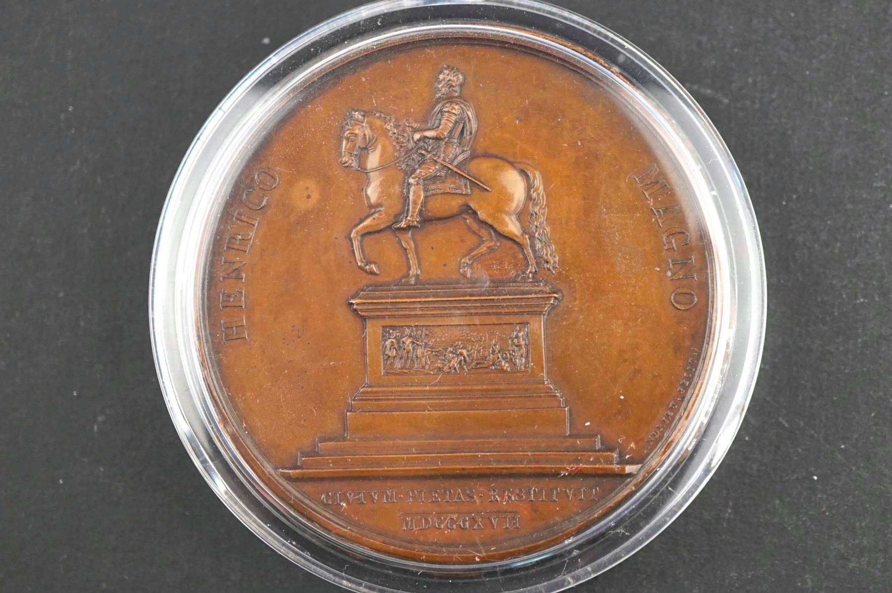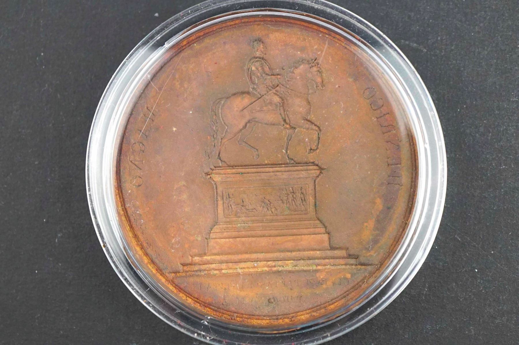 Restoration of the Statue of Henry IV UNIFACE REPOUSSEÉ OF THE REVERSE OF THE MEDAL by Andrieu Collignon 105 FDC AE-50 6.2 grams, ragged edge... UNIQUE in plastic coin holder to protect it from damage. The writer has never seen one like this before.