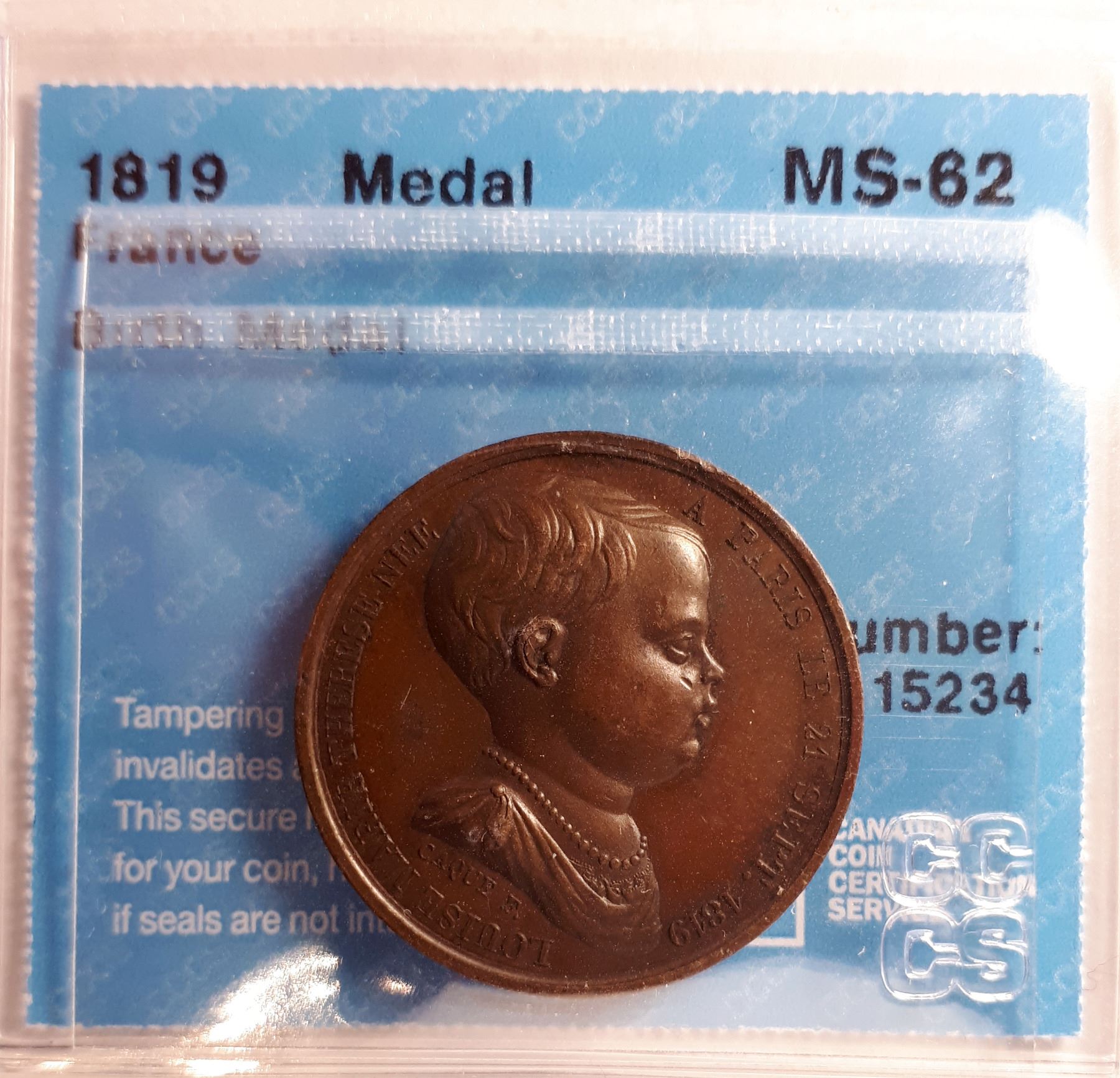France 1819 Birth Medal Louise Marie Therese MS-62 CCCS