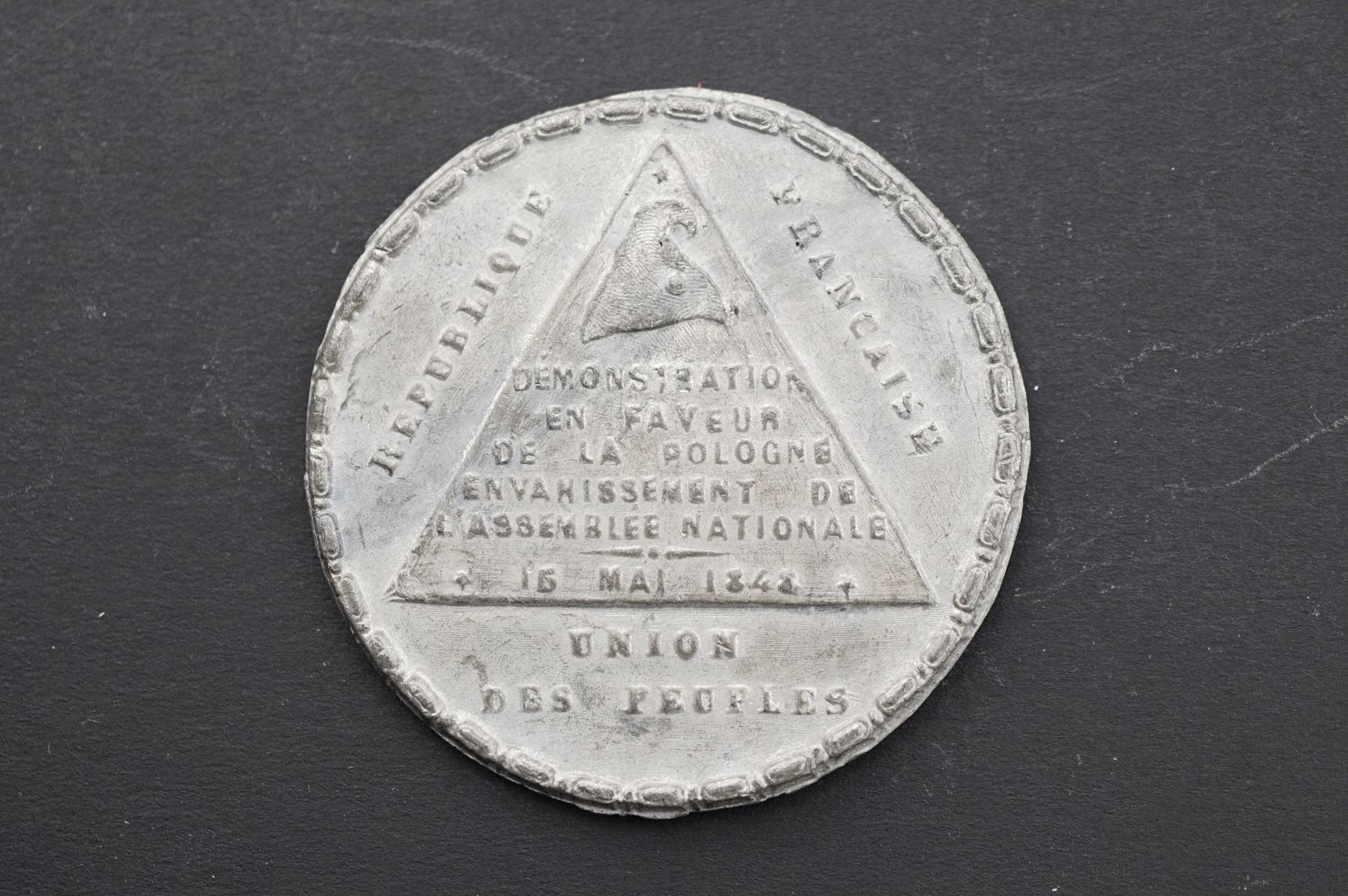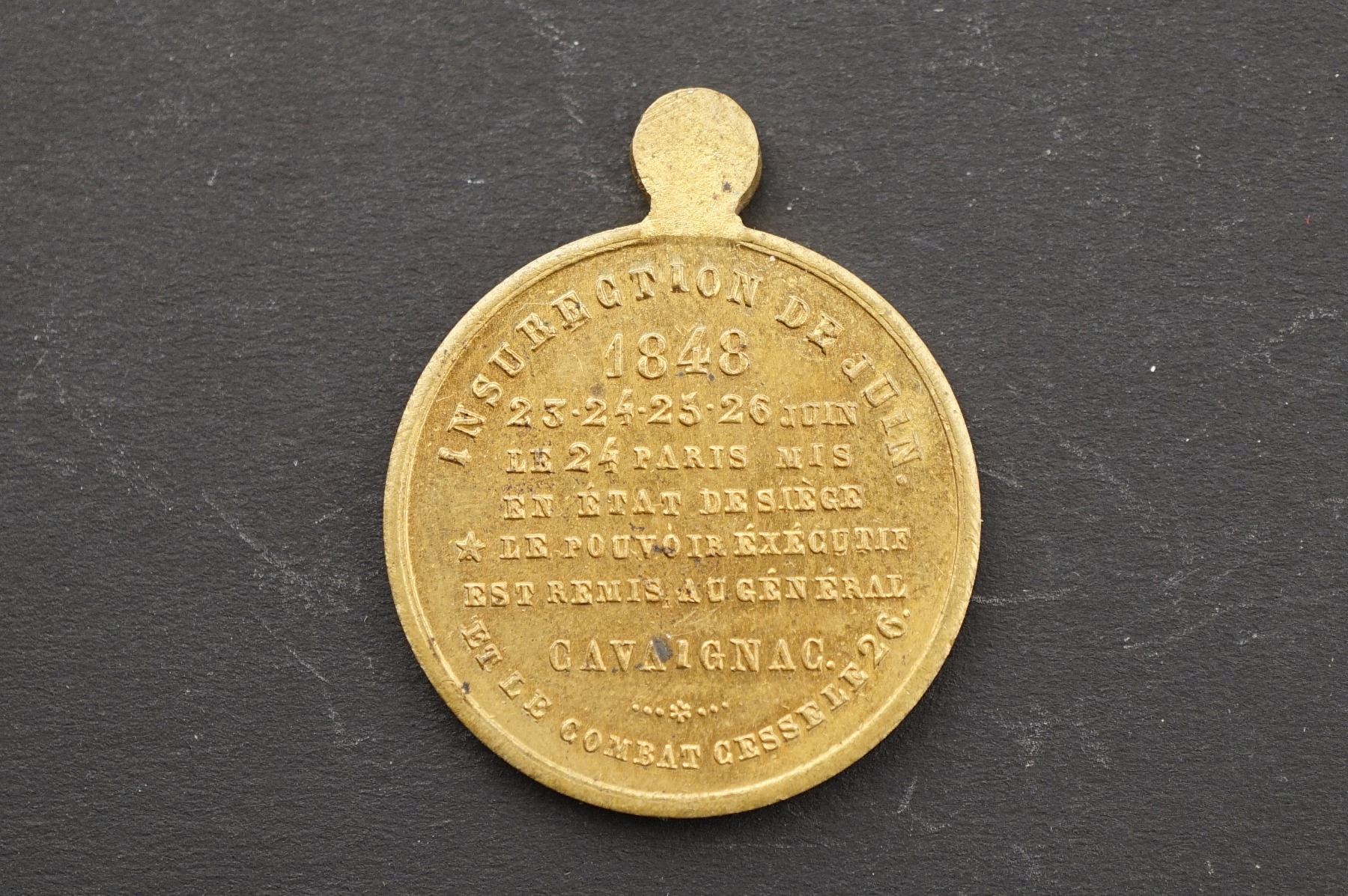 3 Pcs. Jan.23-24 Au Combattants by Montagny FDC AE-26 w/loop 14.0 grs, Edge: Plain, May 15 Demonstration Cast Lead w/silver wash LD-49 32.8 grs & June 26 General Cavaignac FDC AE-29 Gilt w/loop 12.3 grs.