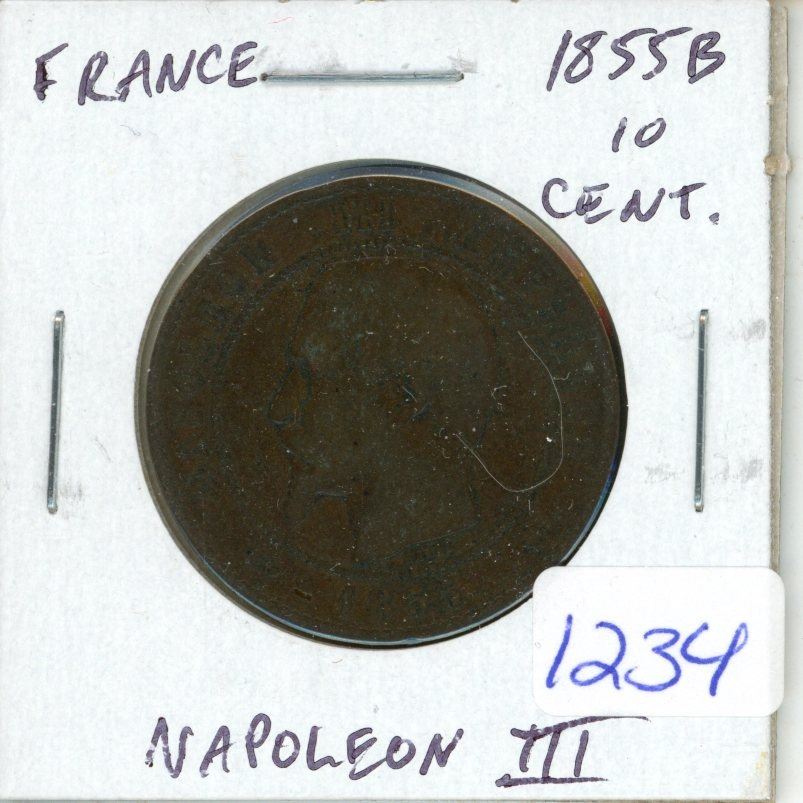 France. 1855B 10 Centimes depicting Emperor Napoleon II. VG.