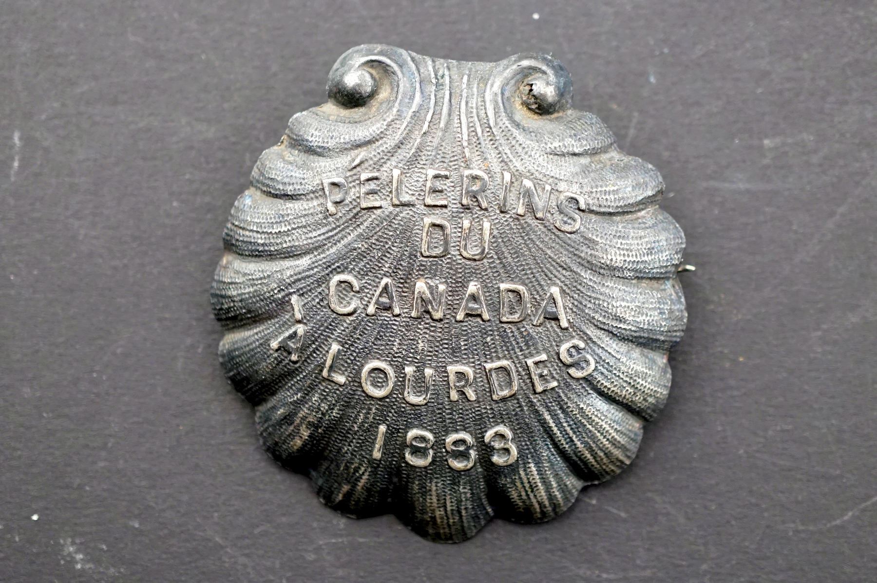 France, 1883 Pélerins du Canada à Lourdes 1883 Pilgrimage Pin, seashell form