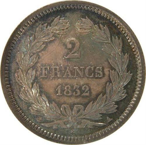 2 Francs 1832A NGC MS-65. A superbly lustrous piece with attractive light-medium toning
