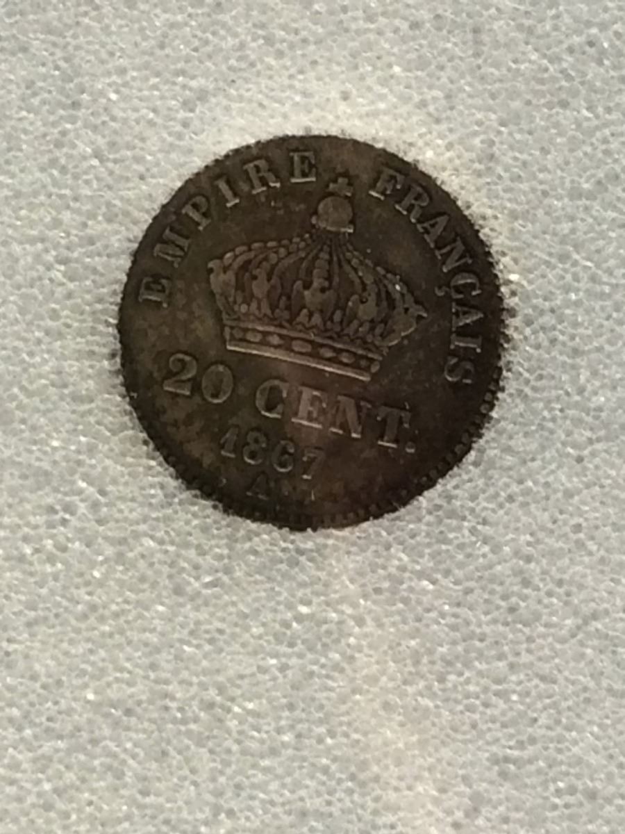 France 20 Centimes 1867-A; NNC certified VF-35. KM # 808.1