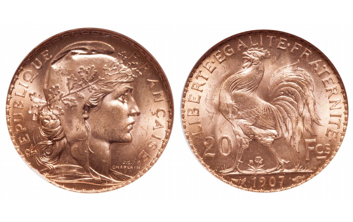 France. 20 Francs. 1907. Gold, .900, 6.4516g, AGW 0.1867 oz. NGC graded Gem Uncirculated-65.