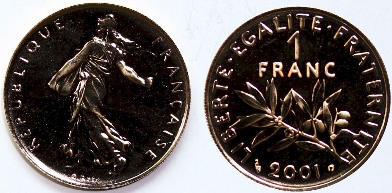 France; 2001 1 Franc (10K Minted) BU/PL 8 grams, .750