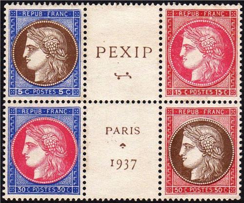 France #329 XF-NH STAMP NH PEXIP 1937 BLOCK OF 4<Br>*** ITEM HAS NO FAULTS***