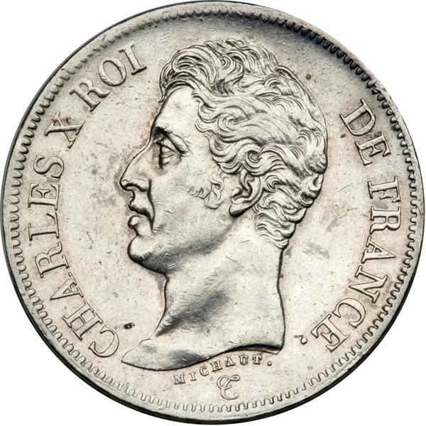 France. 5 Francs, 1826-B. Dav-88; KM-720.2; Gad-643. Charles X. Head left. Reverse: Crowned arms. Lightly cleaned with remaining luster. Extremely Fine.