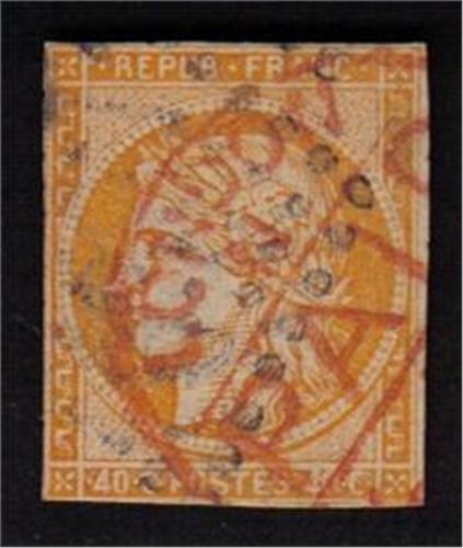 France #7 USED VF WITH SPECIAL RED PAID CANCEL<Br>*STAMP HAS A THIN*