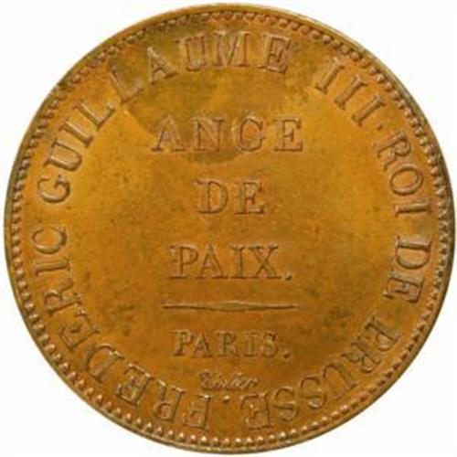 France. Allied Occupation (1814). Bronze Pattern 5 Francs for Friedrich Wilhelm III of Prussia. 1814