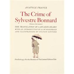 France, Anatole: The Crime of Sylvestre Bonnard. [Member of the Institute] The Translation by Lafcadio Hearn. With an Introduction by A. S. W. Rosenbach and Illustrations by Sylvain Sauvage.<p>In original gilt cloth binding, in card case.