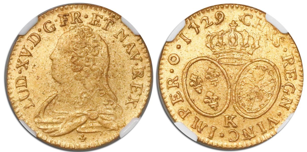 France (Bordeaux mint), Louis d'or, Louis XV, 1729-K, from the Auguste (1761), encapsulated NGC genu