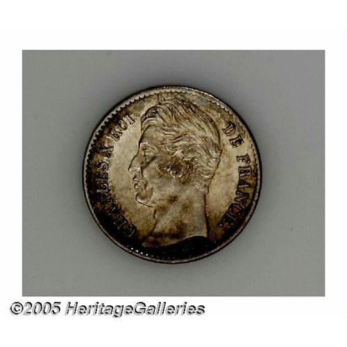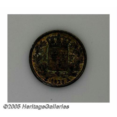 <B>Charles X Silver Tandem, </B></I>KM722.1 1/4 Franc 1828A, choice toned AU-UNC, and KM724.1 Franc 1826A, superb toned AU-UNC, a beautiful example with great eye appeal.