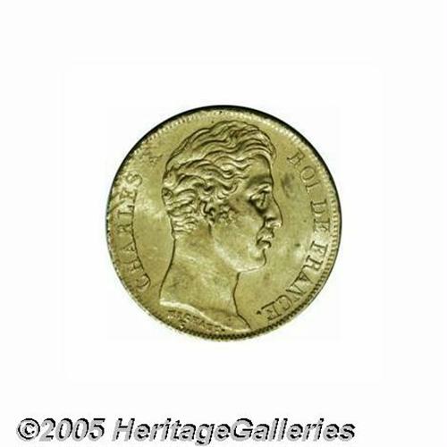 <B>Charles X gold 20 Francs 1830-A, </B></I>KM726.1, nice lustrous AU, minor contact marks. Scarce grade for this type.