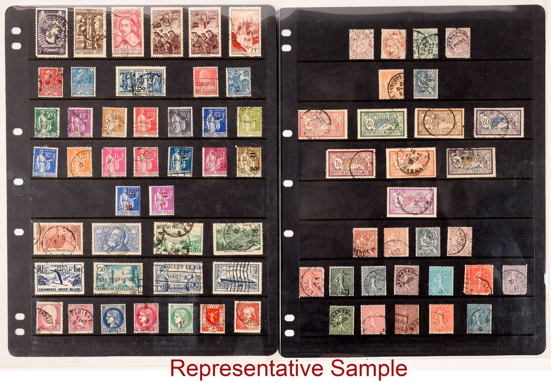France and Colonies. Balance of about 1,000 different stamps in a binder filled with stock sheets, some good Peace and Commerce incl. Ivory Coast, Algeria, Andorre, Chad, Indo-China, Lebanon, Madagascar, Malagasy, Madeira, Malawi, Malaya, Mauritania, Manchuckuo, Middle Congo, Mayotte, Moheli, New Caldonia, New Guinea, New Hebrides, Obock, St. Pierre, Togo, Tunisia. complete mostly mint, Reunion Peace and Commerce complete mint ex trivial 10c black, etc., good lot for the generalist or eBay seller.