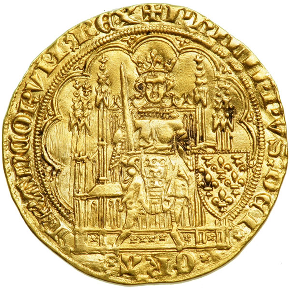 France. Ecu d'or, ND. Fr-270. Philippe VI De Valois, 1328-1350. King with sword and shield, seated on Gothic throne. Reverse: Floriated cross in quadrilobe. Cleaned. NGC graded About Uncirculated, Details (Tooled).