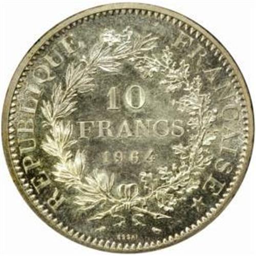France. Fifth Republic (1959-). Silver Pattern Essai 10 Francs by Dupre. 1964.